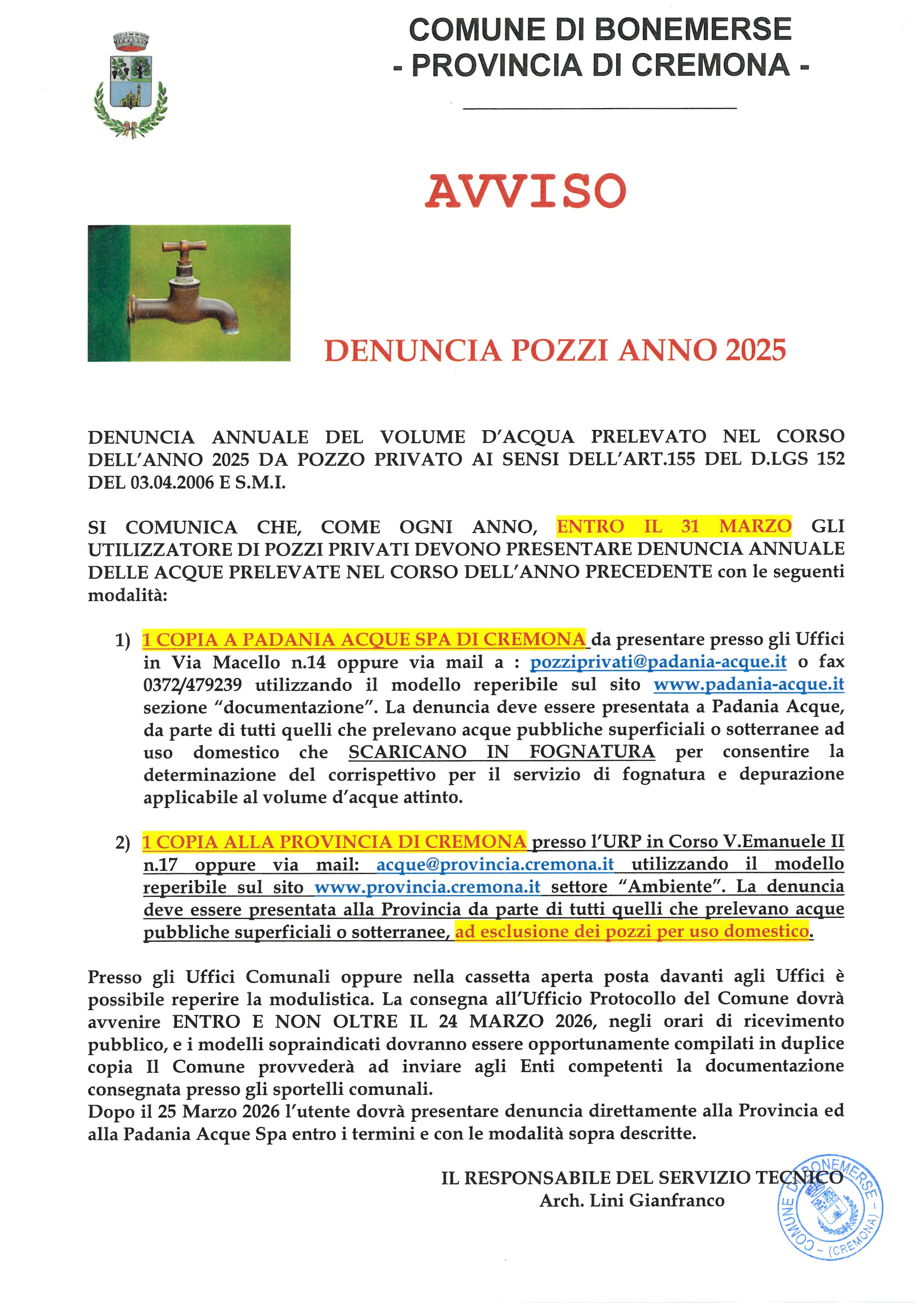 Dichiarazione acque prelevate anno 2025 MODULI IN CASSETTA ESTERNA COMUNE